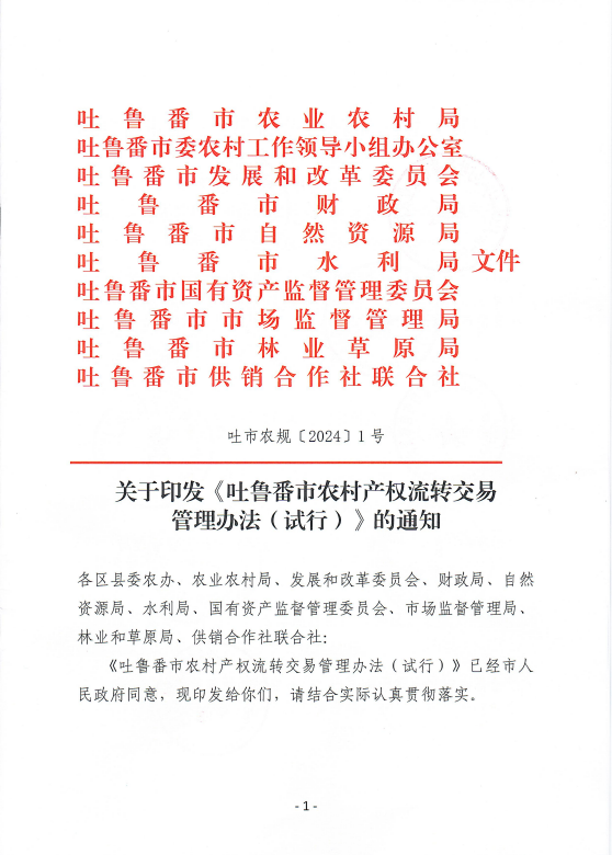 关于印发《吐鲁番市农村产权流转交易管理办法(试行)》的通知